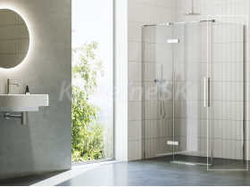 Pevná stena Cool! vo vyhotovení lesklý chróm a s výplňou z číreho skla s ochrannou vrstvou Ravak AntiCalc. Otočiteľný výrobok pre ľavý aj pravý variant.