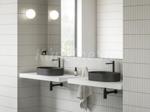 doplnky k dokúpeniu: doska pod umývadlo / skrinka pod umývadlo na dosku, umývadlová pileta pevná, keramická pileta Flat, umývadlový sifón alebo nábytkový, extra predĺžené batérie