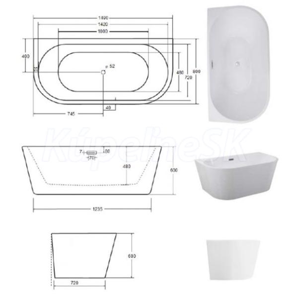 Rozmer voľne stojacej vane:
