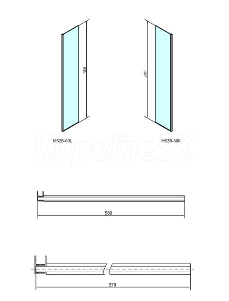 Polysan MODULAR SHOWER Walk-in prídavný panel na inšt. na stenu modulu 2, 600 mm, pravý MS