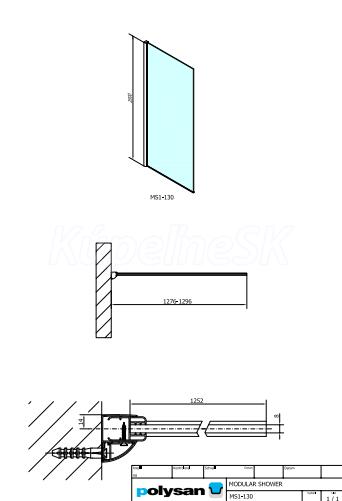 Polysan MODULAR SHOWER Walk-in stena na inštaláciu na múr, 1300 mm