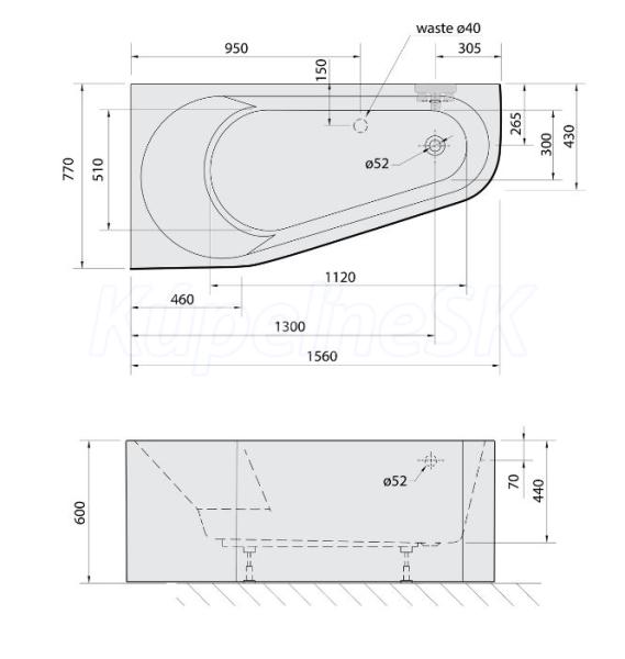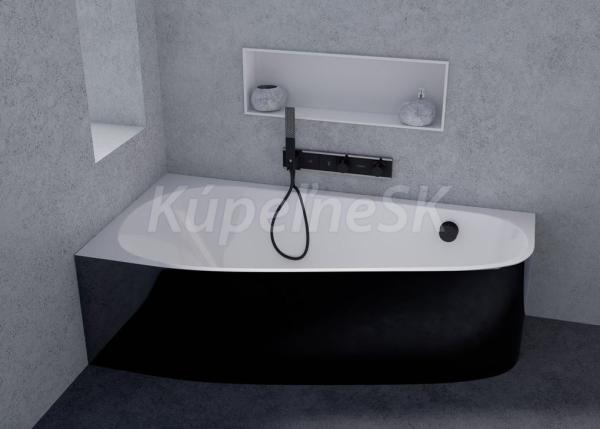 Polysan PROJEKTA L MONOLITH rohová voľne stojaca vaňa 156x77x60cm, biela/čierna