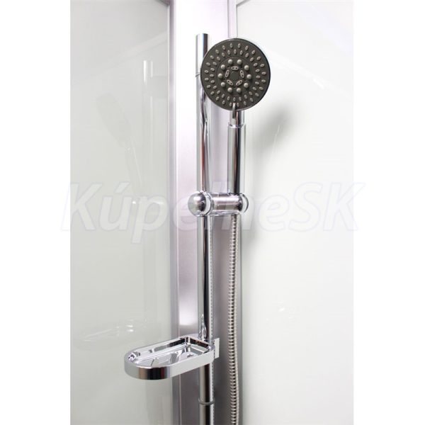 Profily vo farbe satin, sklo Point, hrúbka skla 4/4 mm, štvrťkruhový, R550, rozmer 800x800 mm, výška 2200 mm, liatá vanička, vnútorná výška 1970 mm, hlavová sprcha a strieška súčasťou dodávky.