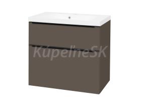 Mailo, kúpeľňová skrinka s umývadlom z liateho mramoru, 810x750x476 mm, spodná, šedá láva, mat, 2 zásuvky, čierne madlo.