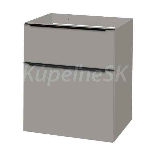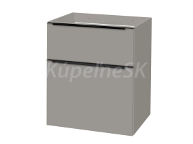 Mailo, kúpeľňová skrinka 605x700x476 mm, spodná, šedá mat mat, 2 zásuvky, čierne madlo. Možno kombinovať s umývadlom, popr. s kúpeľňovou doskou na skrinku.
