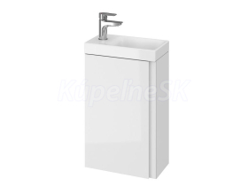 Malá umývadlová skrinka MODUO 40 s jednoduchým a moderným dizajnom sa dokonale hodí aj do tých najmenších kúpeľní. Jej vonkajšia strana je povrchovo upravená lesklým lakom v elegantnom bielom odtieni. Tento model umožňuje jednoduchú montáž dvierok na ľavú aj pravú stranu skrinky. Má pohodlnú zabudovanú úchytku a využíva systém pomalého zatvárania. Skrinka je vhodná pre umývadlo MODUO 40.