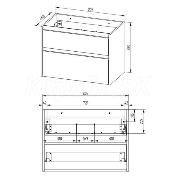 Zákazková výroba, Opto, kúpeľňová skrinka 805x580x458 mm, spodná, Biela Arctic, 2 zásuvky. Možno kombinovať s umývadlom, popr. s kúpeľňovou doskou na skrinku.