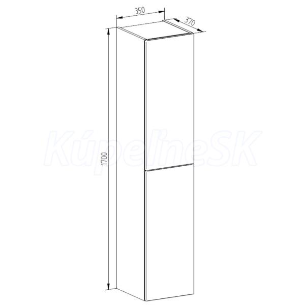 Zákazková výroba, Aira, kúpeľňová skrinka 350x1700x370 mm mm, vysoká, závesná, s štyrmi policovými doskami, pravé otváranie, Multidecor, Biela vysoký lesk perlička
