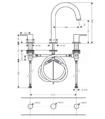 Hansgrohe Vernis Shape umývadlová 3-otvorová batéria s výpusťou a tiahlom Chróm 71563000