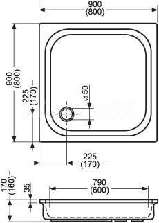 Roth COLA 90x90cm štvorcová akrylátová sprchová vanička pre podmurovanie, výška 17cm