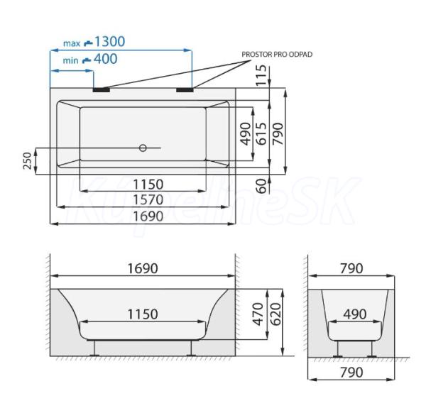 Prevedenie: samonosná voľne stojaca vaňa do niky