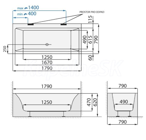 Prevedenie: samonosná voľne stojaca vaňa do niky