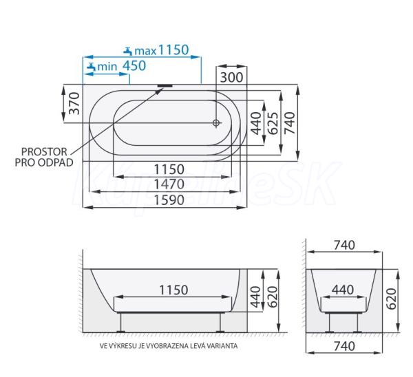 Prevedenie: samonosná voľne stojaca vaňa do rohu