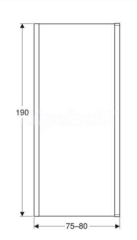 Pevná bočná stena Geberit pre dvere GEO: 75–80x190x8cm, Striebristá / Transparentné sklo
