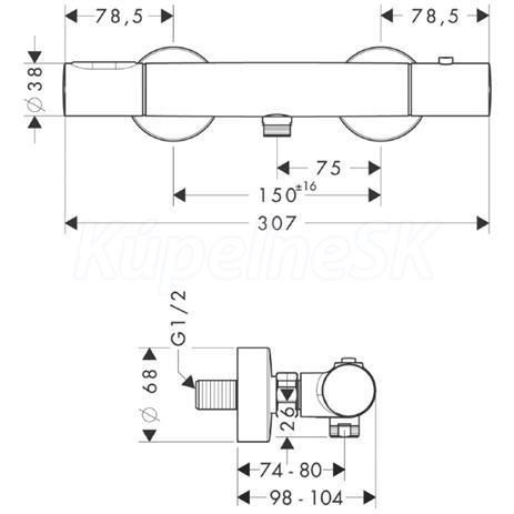 Termostatická sprchová batéria na omietku, chróm