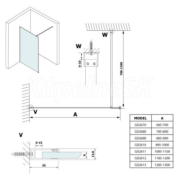 - Stenové profily s toleranciou 15 mm uľahčujú stabilnú montáž zásten, inštalácia je možná na dlažbu alebo sprchovú vaničku