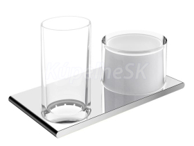 KEUCO Edition 400 Dvojitý držák na skleničku a dávkovač tekutého mýdla pochromováno kompletně, součásti: 1 x sklenička z křišťálového skla 1 x dávkovač tekutého mýdla kompletně s nádobkou z křišťálového skla matovaného a pumpičkou objem: asi 150 ml dávkování: asi 0,5 ml/stisk 11553019000