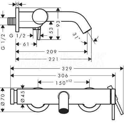- vzdialenosť stredu: 150 mm ± 12 mm