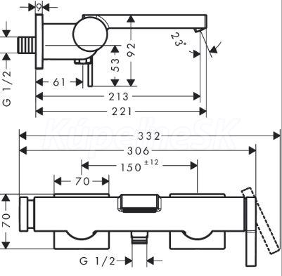 - vzdialenosť stredov: 150 mm ± 12 mm
