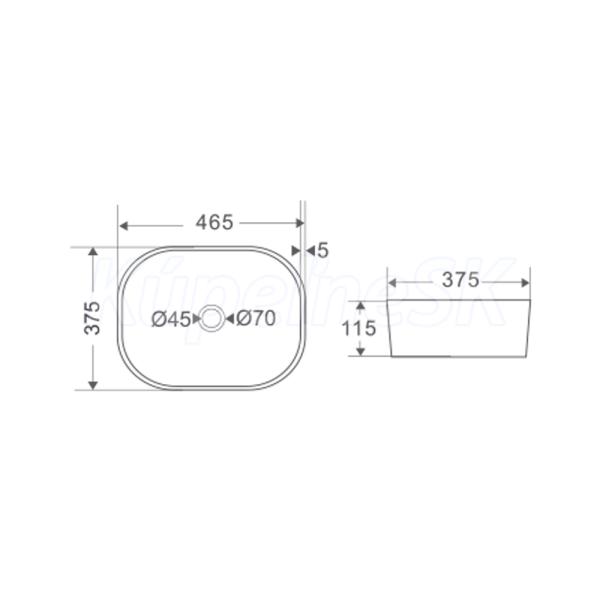 Mereo Umývadlo na dosku bez prepadu, 465x375x115 mm, oválne, keramické - pre zaslanie bal