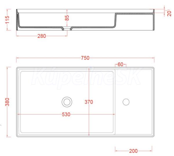 Artceram SCALINO 75 Umývadlo na plochu 75x38x11,5cm, biela, SCL004