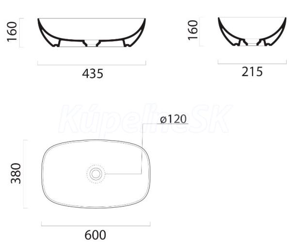 GSI NUBES keramické umývadlo na dosku 60x38cm, čierna mat 978326