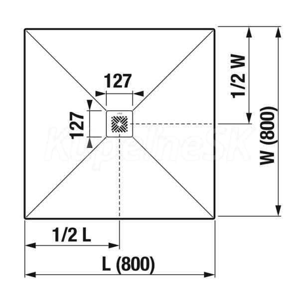 Jika Padana rohová sprchová vanička 80x80x2,7cm liaty mramor,vr. nerez krytky sifónu,Biela
