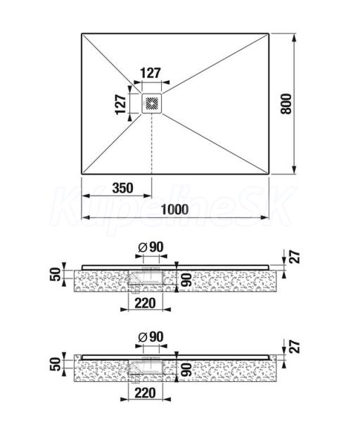 Jika Padana obdĺžniková sprchová vanička 80x100x2,7 cm,liaty mramor,vr.nerez krytky,Biela