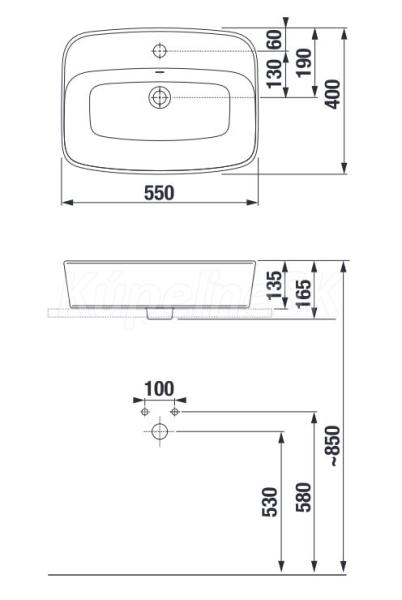 Jika Lyra Plus keramické umývadlo na dosku, 1 otvor pre batériu,prepad,Biela matná