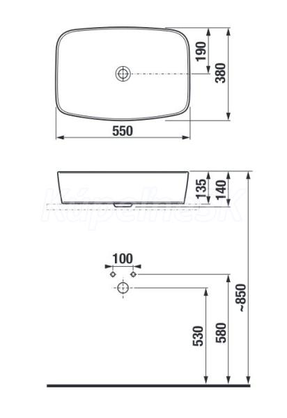 Jika Lyra Plus keramické umývadlo na dosku 55x38cm,bez otv. pre batériu,bez prepadu,Biela