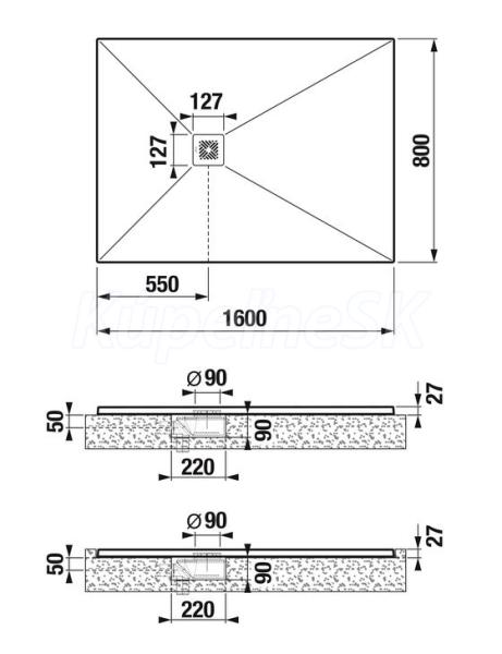 Jika Padana obdĺžniková sprch vanička 80x160x2,7 cm,Liaty mramor,vr.nerez krytky sif,Biela