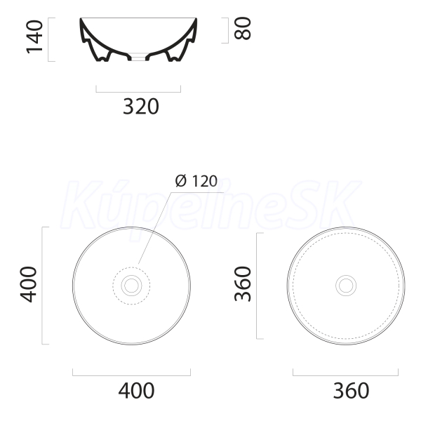 GSI PURA keramické umývadlo na dosku, priemer 40cm, biela ExtraGlaze