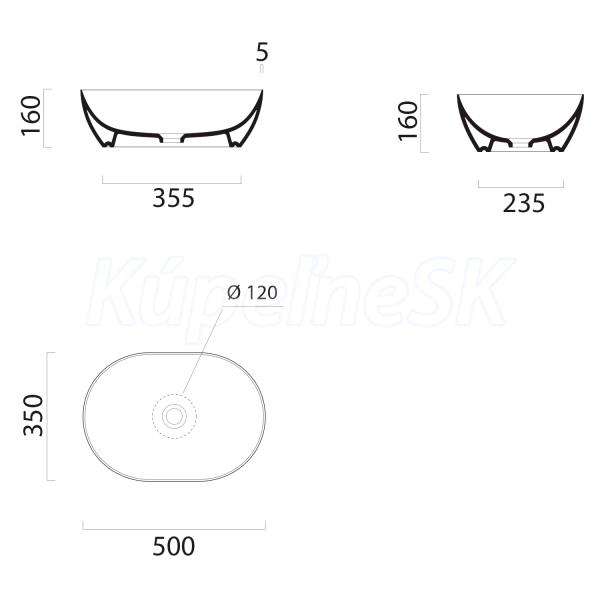 GSI PURA keramické umývadlo na dosku 50x35cm, biela ExtraGlaze 886011