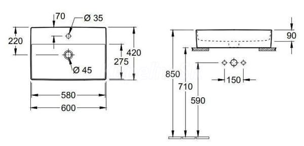 Súčasťou doskového umývadla nie je sifón ani umývadlová batéria.