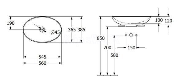 Villeroy & Boch Loop & Friends Umyvadlo k postavení na desku 560x380 Oválná, pro nástěnnou armaturu nebo armaturu se zvýšeným tělem, bez plochy pro otvor pro armaturu, bez přepadu Bílá Alpin CeramicPlus