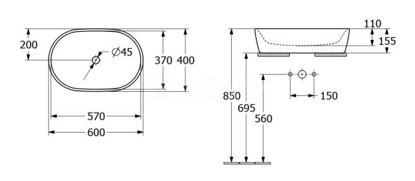 Villeroy & Boch Architectura umývadlo na dosku 60x40 cm s prepadom, Alpská Biela