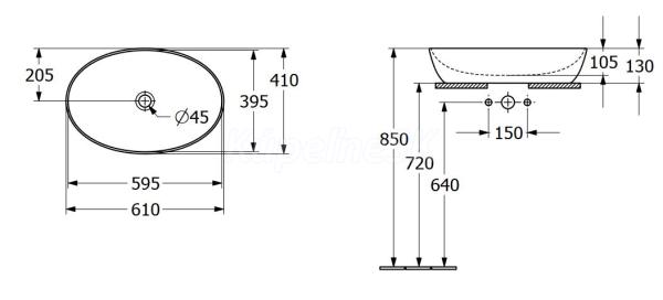 Villeroy & Boch Artis Umyvadlo k postavení na desku 610x410 Oválná, pro nástěnnou armaturu nebo armaturu se zvýšeným tělem, bez plochy pro otvor pro armaturu, bez přepadu Coal Black