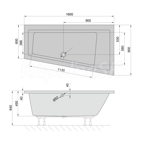 Polysan ANDRA R akrylátová asymetrická vaňa 160x90x45 cm na obmurovanie Ivory