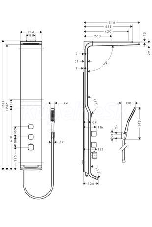 Hansgrohe 27008400 sprchový panel Raindance Lift, biela/chróm, na stenu, DN15