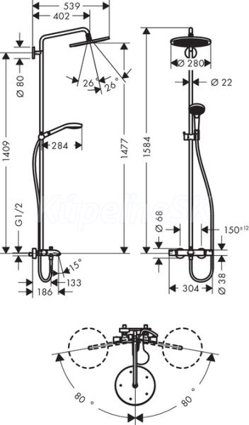 Hansgrohe CROMA Select termostat.stĺp 280 1jet Showerpipe k vani,chróm 26792000
