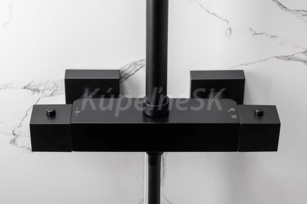 KFA LOGON BLACK 22x22cm, hranatý termostatický sprchový stĺp 3-pol.+mydelnička čierna