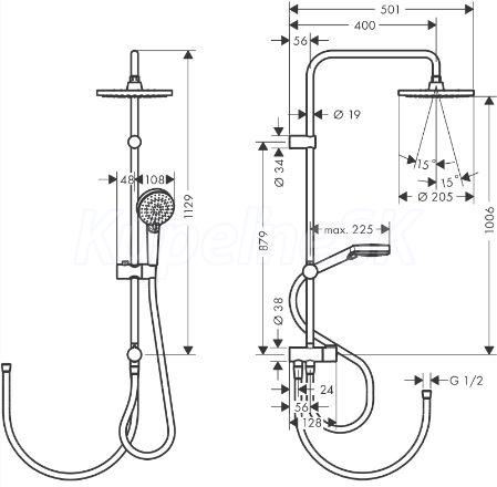 Nástenná sprchová súprava Showerpipe 200 na renováciu obsahuje: