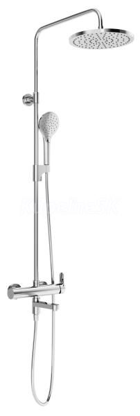 Sprchový stĺp, posuvný, so sprchovým setom. Vo vyhotovení lesklý chróm. nastaviteľná výška hlavovej sprchy: 97 – 127 cm farebné vyhotovenie: CR - chróm lesklý vyhotovenie hlavovej sprchy: okrúhla ABS, priemer 25 cm; 1 funkcia Prietoku vody - Rain; dá sa otáčať do strán vyhotovenie ručnej sprchy: ABS Select, priemer 11 cm; 3 funkcie intenzity Prietoku vody – Rain, SoftRain, Drop; OneHand - výškovo nastaviteľný posuvný jazdec a otočný držiak vyhotovenie batérie: CoolFeel - ovládanie teploty naľavo znižuje nadmerné ohrievanie batérie na povrchu flexibilná PVC sprchová hadica: dĺžka 150 cm; EasyTwist - zabraňuje prekrúteniu hadice a umožňuje voľné pretáčanie ručnej sprchy vhodný: do všetkých sprchových kútov doplnky na dokúpenie: kúpeľňové doplnky Sprchový stĺp sa inštaluje do sprchového kúta. Je možné ho výškovo prispôsobiť pomocou dotahovacej matice - jednoducho ručne, kedykoľvek po montáži. Výklopné výtokové ramienko slúži ako prepínač medzi ručnou sprchou a napúšťaním vedra alebo napríklad rýchlym opláchnutím nôh. Prepínačom na batérii možno zvoliť Prietok z hlavovej alebo ručnej sprchy. Hlavová sprcha je vybavená funkciou Rain, kedy voda Prietoki príjemne zo všetkých trysiek. Ručná sprcha Select disponuje tromi funkciami intenzity Prietoku vody. Klasický režim Rain pripomína letný dážď a pôsobí na upokojenie pokožky. Pomocou funkcie SoftRain, kedy je prisávaný vzduch, si užijete obzvlášť hebký dážď a každá kvapka je zdrojom pôžitku. Pri nastavení funkcie Drop voda preteká veľmi jemne a využijete ju najmä pri mydlení a umývaní hlavy. Balenie obsahuje segment pre vyrovnanie nerovnosti steny až o 20 mm. Na vonkajšie čistenie odporúčame používať prípravok Ravak Cleaner Chrome. Sprchový stĺp nie je vhodný pre inštaláciu k vani (s ohľadom na výšku hlavovej sprchy).