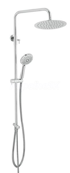 kategória distribúcie Novaservis: Sprchový program | Sprchové sety. Prvotriedne chrómové prevedenie. Set je vhodný na pripojenie k vaňovej alebo sprchovej batérii so spodným vývodom. Súčasťou balenia je hlavová sprcha v SLIM DESIGN s priemerom 250 mm, kovová hadica 150 cm a 3-polohová ručná sprcha. Nastaviteľná výška setu je 890 - 1300 mm. Súčasťou balenia je pripojovacia hadička v dĺžke 70 cm.
