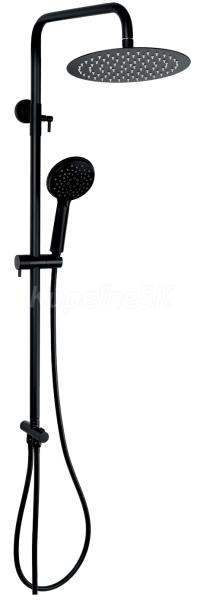 kategória distribúcie Novaservis: Sprchový program | Sprchové sety. Prvotriedne prevedenie čierna-mat. Set je vhodný na pripojenie k vaňovej alebo sprchovej batérii so spodným vývodom. Súčasťou balenia je hlavová sprcha v SLIM DESIGN s priemerom 250 mm, hadica 150 cm a 3-polohová ručná sprcha. Nastaviteľná výška setu je 890 - 1300 mm. Súčasťou balenia je pripojovacia hadička v dĺžke 70 cm.