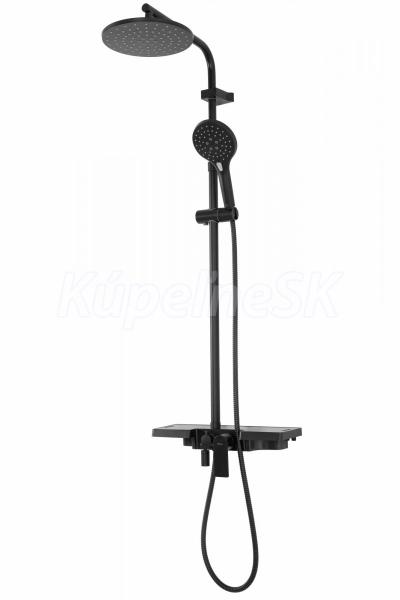 REA SANTOS sprchový stĺp s poličkou a sprchová batéria, Čierna matná P8803 REA-P8803