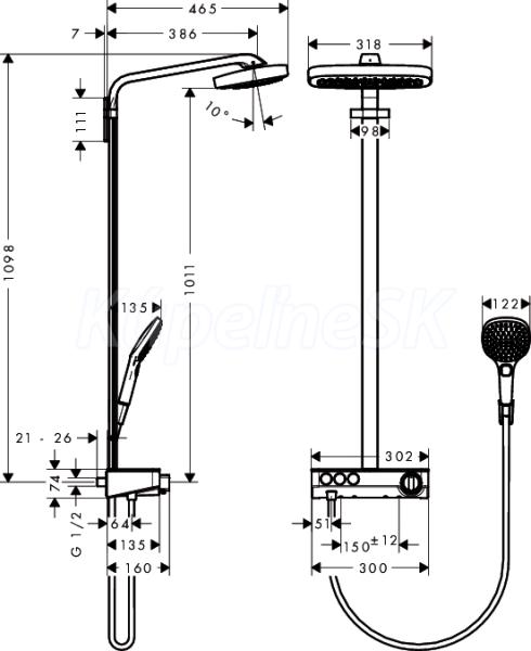 HG Raindance Select sprchový stĺp E 300 3jet,termostat,hlavová,ruč.sprcha,chróm