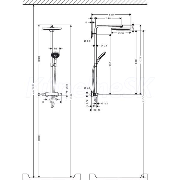 Hansgrohe 27133000 Showerpipe Raindance Select chrom s hornou sprchou Raindance S 300 2jet