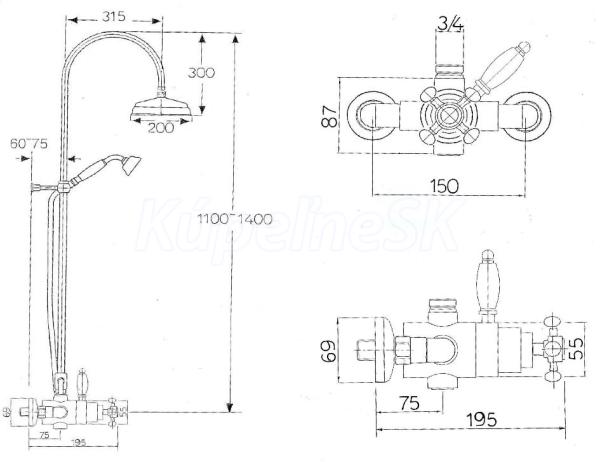 Sprchový stĺp s termostatickou batériou, rozteč prívodov 150 mm