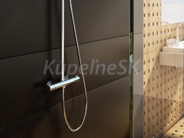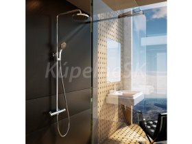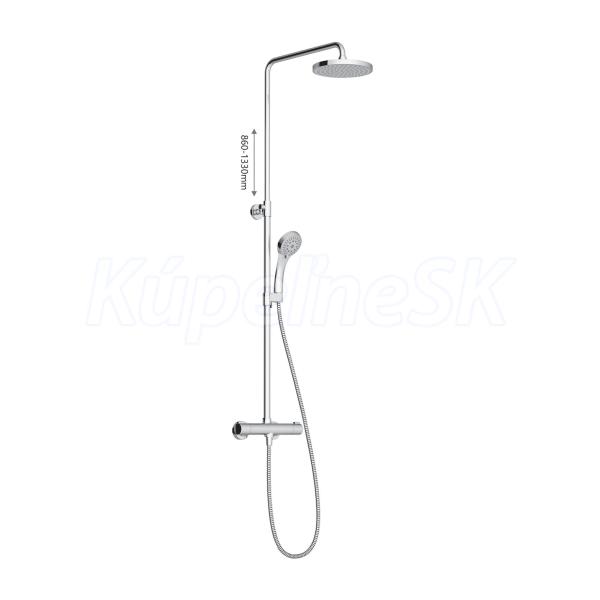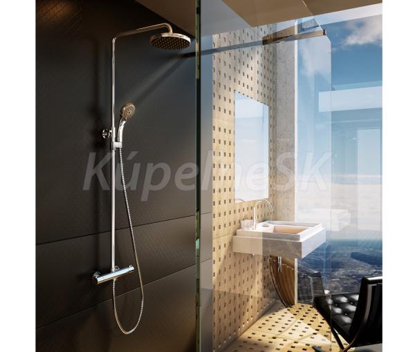 Sprchový stĺp Termo, posuvný, so sprchovým setom. Vo vyhotovení lesklý chróm. Nastavenie stálej teploty vody.